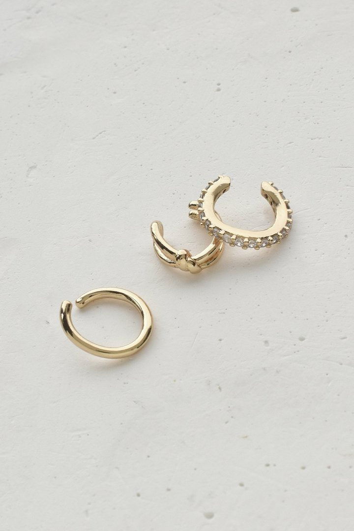 キュービックジルコニア × メタル ノット 3PCS セット イヤーカフ