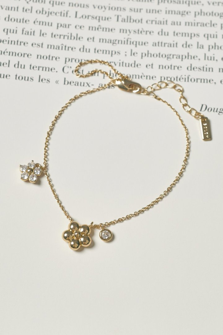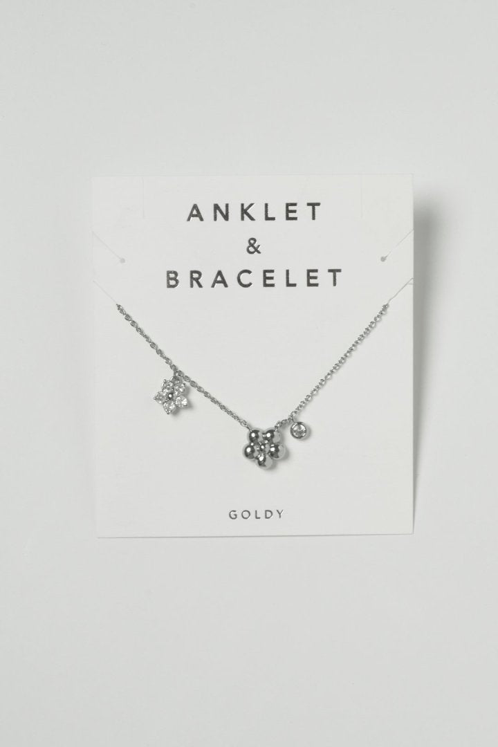 キュービックジルコニア × メタル フラワー アンクレット & ブレスレット