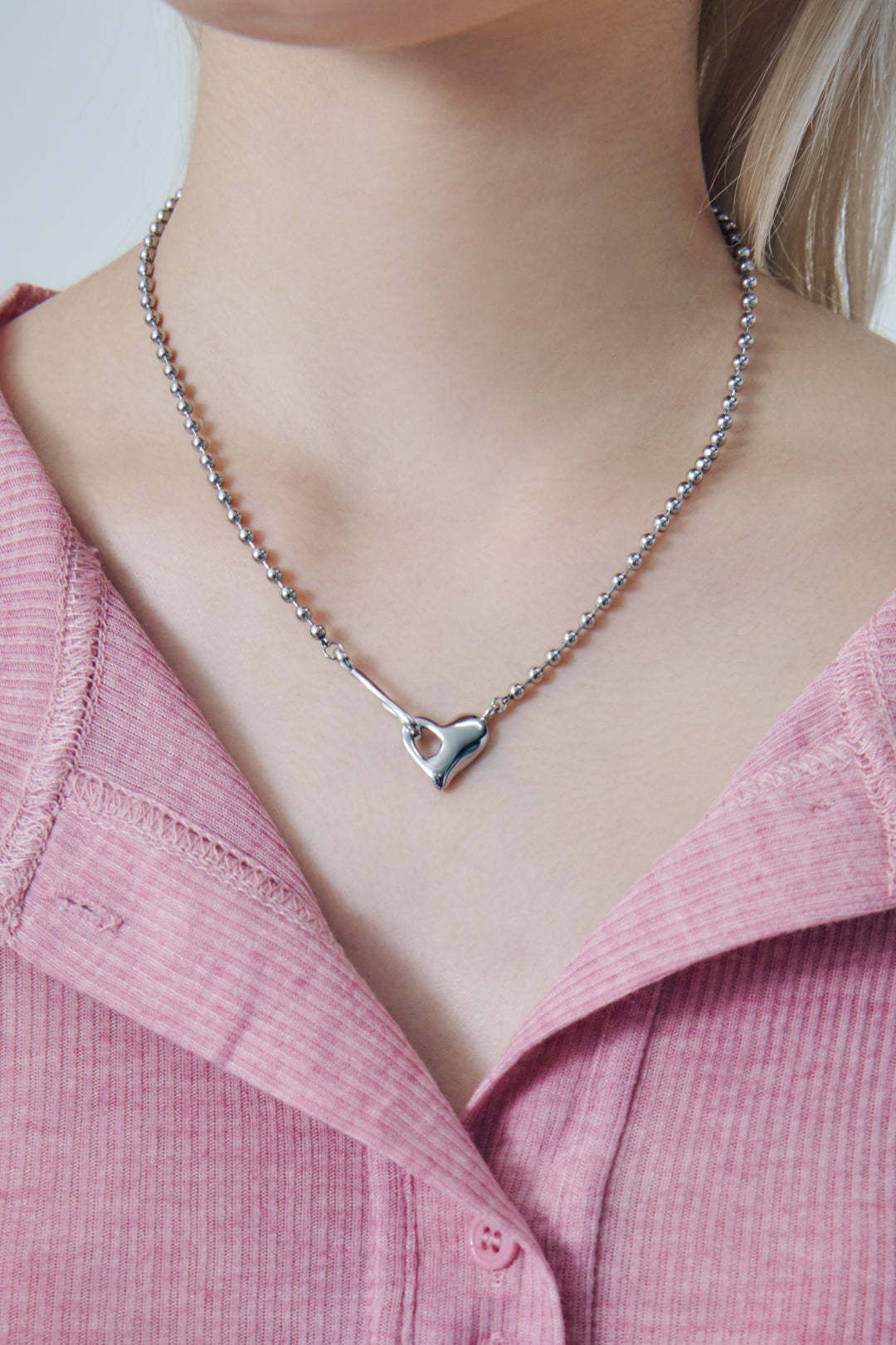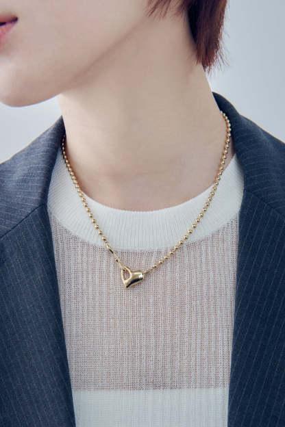 ハート フック × ボール チェーン ステンレス ネックレス