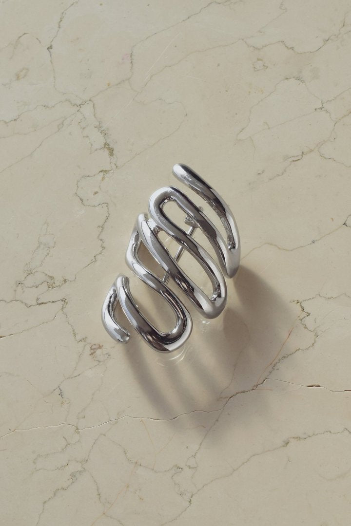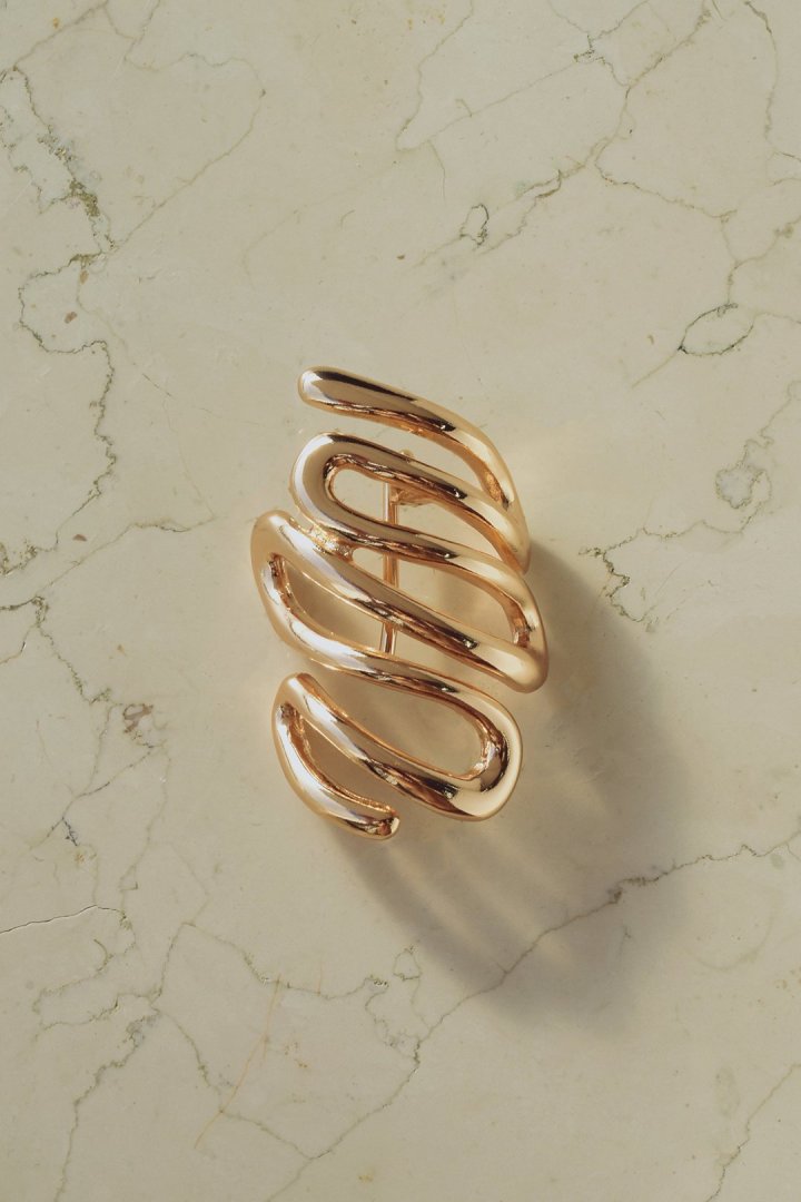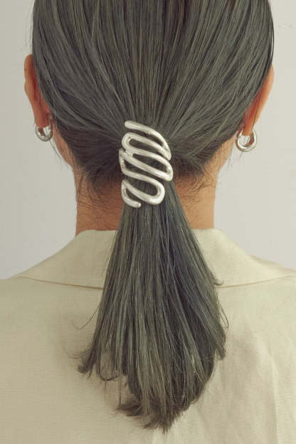 描いたような独創的なラインが髪の毛を包み込むようなデザイン。